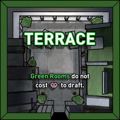 - la tuile de départ, qui peut s'ouvrir dans les 4 directions possibles, qui ne peut apparaître qu'une seule fois dans le manoir, et qui sert de point de départ au joueur;